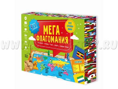 - Карточная игра "Мегафлагомания" Уникальная игра, которая поможет превратить изучение географии в увлекательное приключение! Детям нравится соревноваться, а родителям - нравится, когда из ребёнок становится умнее. В этой настольной игре учтены желания и детей, и взрослых! Это продолжение легендарной игры «Флагомания». Теперь в одной коробке вам доступна информация обо всех странах мира (флаги, столицы, валюта, символы стран).