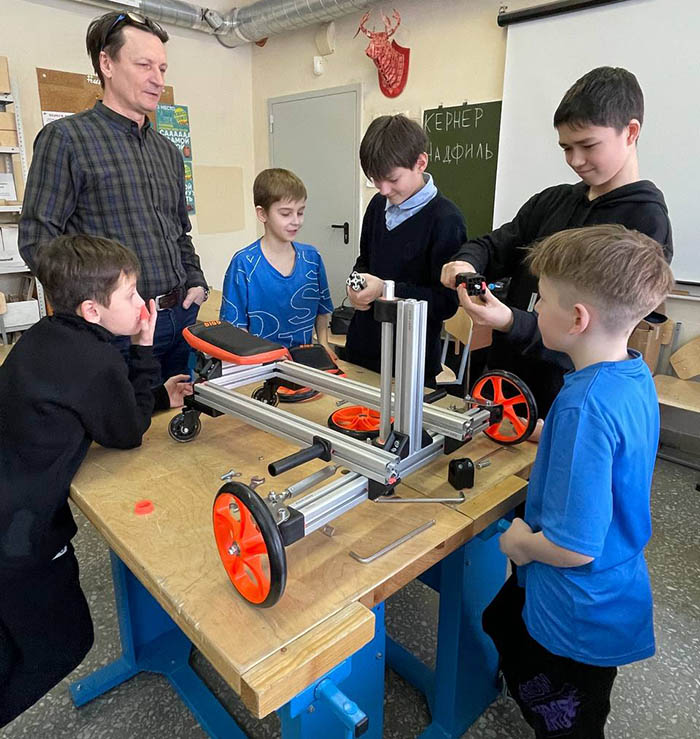 Эти наборы рассчитаны уже для более взрослых ребят и могут выдерживать вес до 90 кг. Найдут свое применения на уроках труда и технологии. Вместо обычных табуреток у ребят появляется возможность работать с реальной техникой.