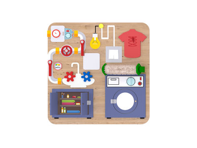 Бизиборд «Ванная» - настенный бизиборд из новой серии "Домашние хлопоты". Развивает бытовые навыки, мелкую моторику, учит пользоваться элементарными механизмами: выключателем, вентилями, дверцами. Подходит для детей от 3-х лет и коррекционных занятий по индивидуальным маршрутам для детей с ОВЗ.
