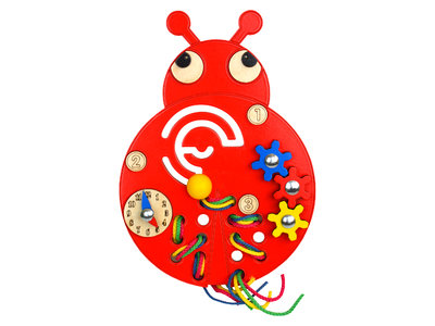 Бизиборд "Божья коровка Карамелька" - помогает малышам подготовиться к школе, тренирует кисть, готовит руку к письму. В комплектацию входят: лабиринт, шнуровка, циферблат и разноцветные шестеренки. Размер бизиборда 30х21см.