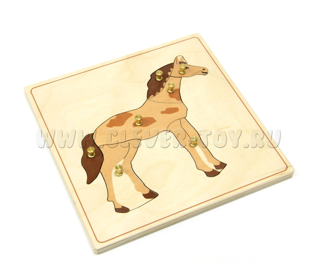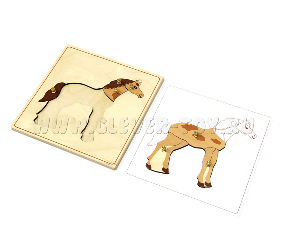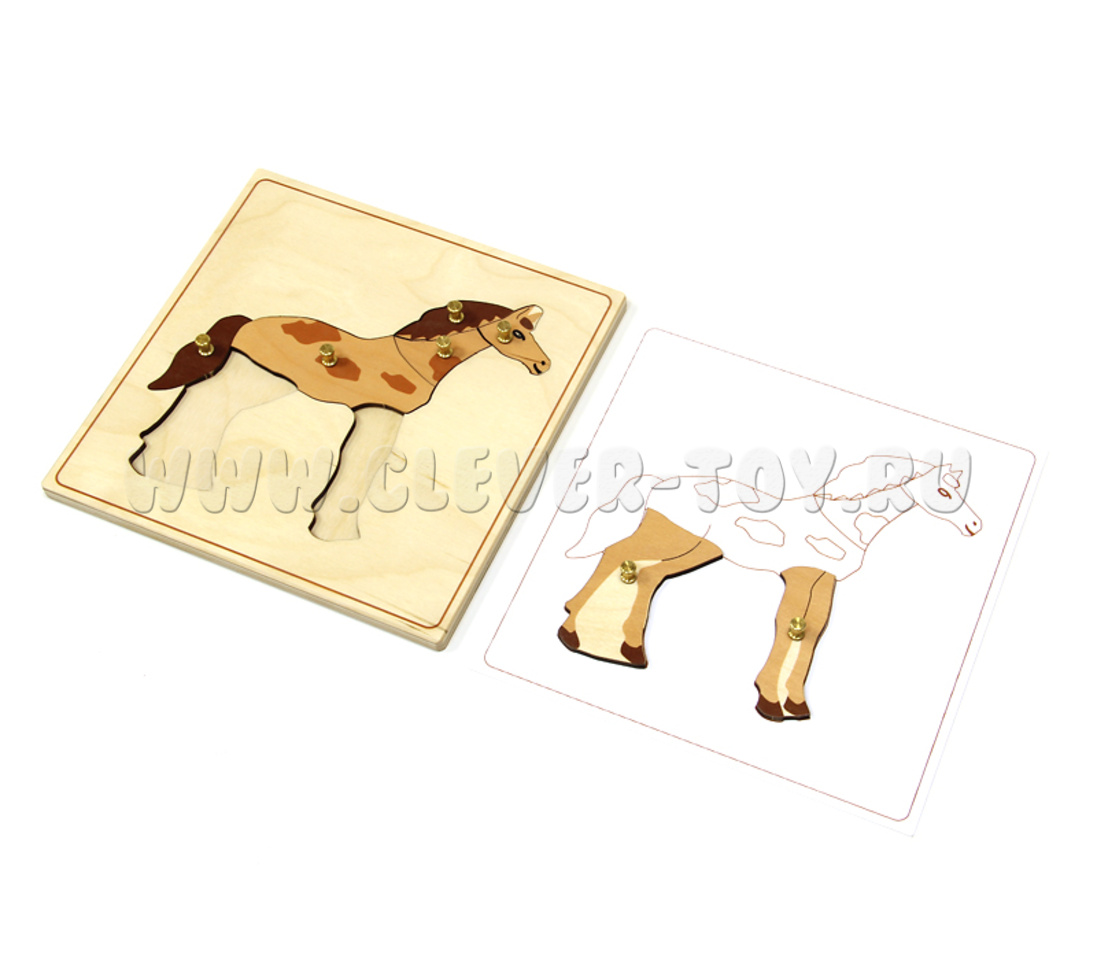 Знакомство со строением лошади путем составления целого из частей и проговаривания их названий способствует развитию речи, увеличению словарного запаса и формированию восприятия формы.