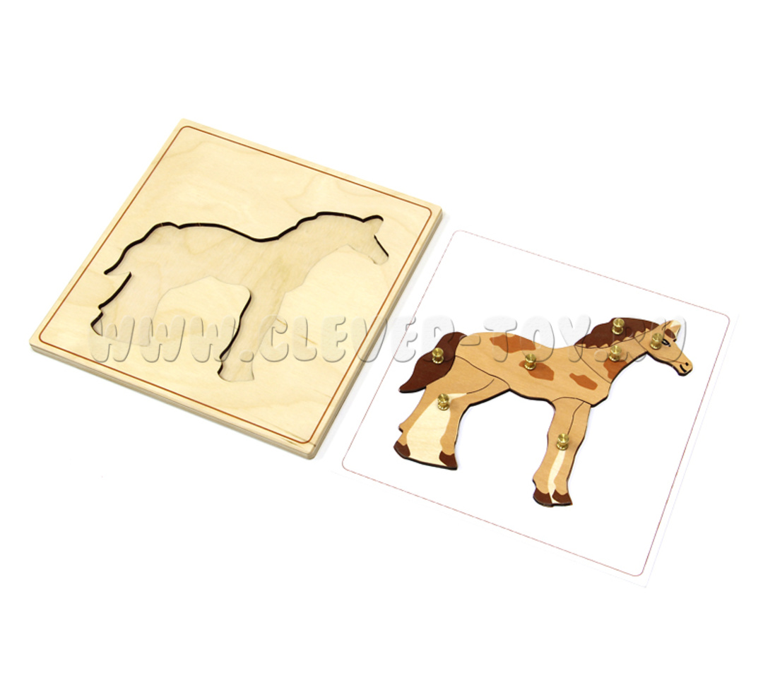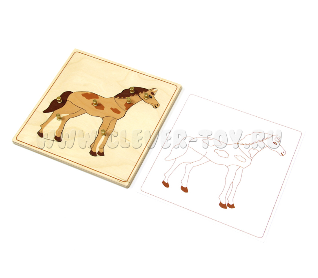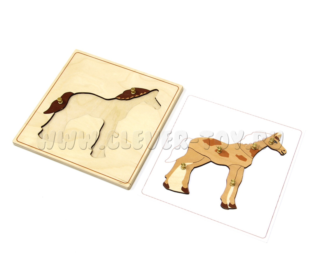 Знакомство со строением лошади путем составления целого из частей и проговаривания их названий способствует развитию речи, увеличению словарного запаса и формированию восприятия формы.
