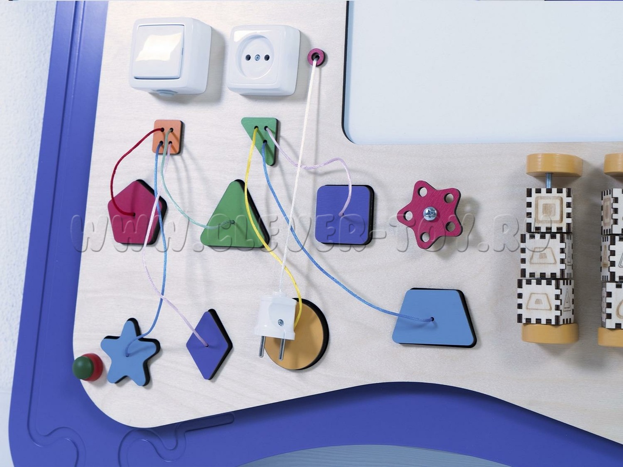 Основная цель бизибордов - помочь детям безопасно освоить предметы быта (замки, крепления, механизмы, переключатели, розетки) и развить мелкую моторику. Используя обесточенные тренажёры с яркими рисунками, дети улучшают свои навыки и готовятся применять их на практике.