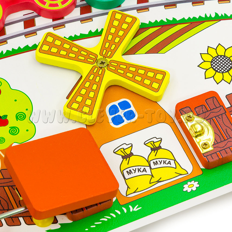 Бизиборд «Вагончики» от крупнейшего производителя деревянных игрушек – фабрики «Алатойс» - выполнен из экологически чистого материала – дерева (берёза).