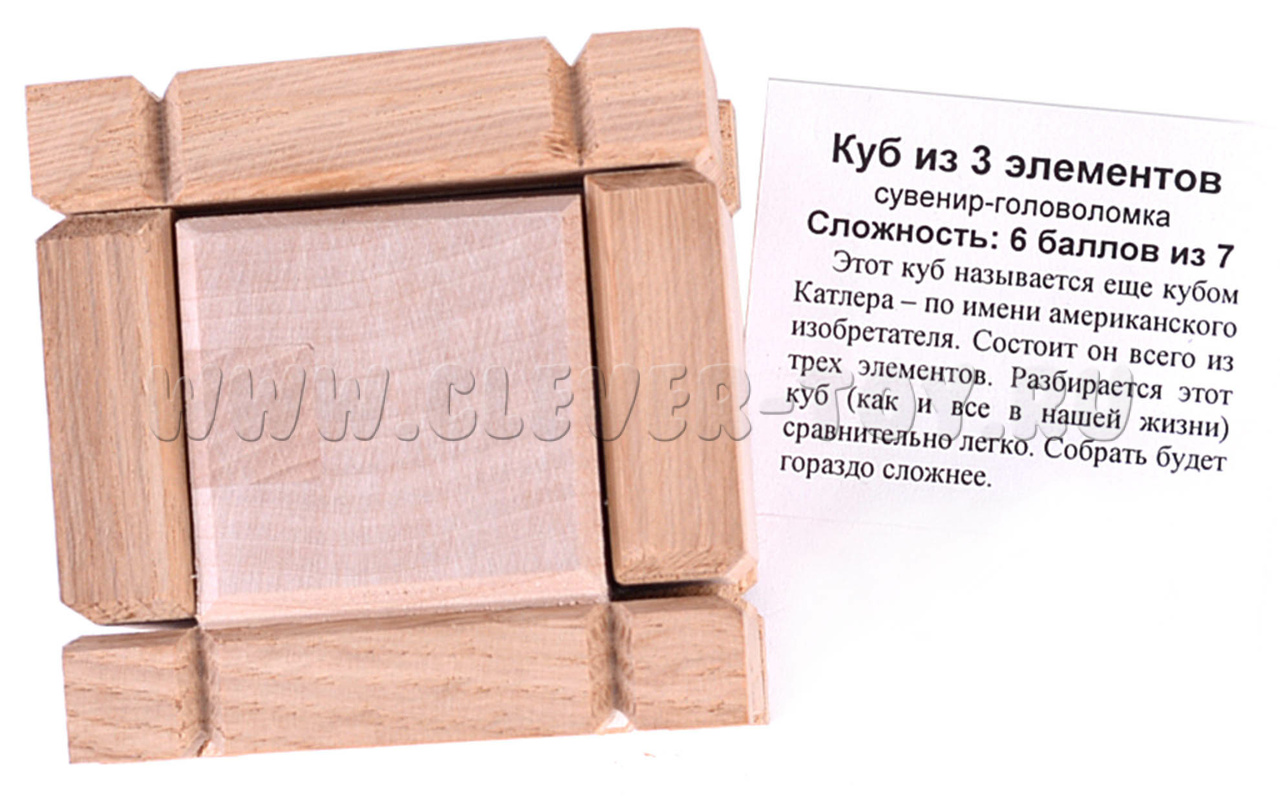 Головоломка "Куб Катлера из 3-х элементов" (дерево)