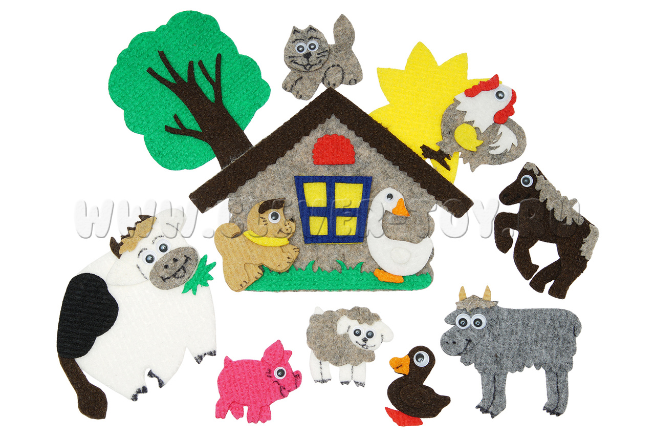 • 10 фигурок животных - собака, лошадь, петух, гусь, утка, свинья, коза, овца, корова, кот,