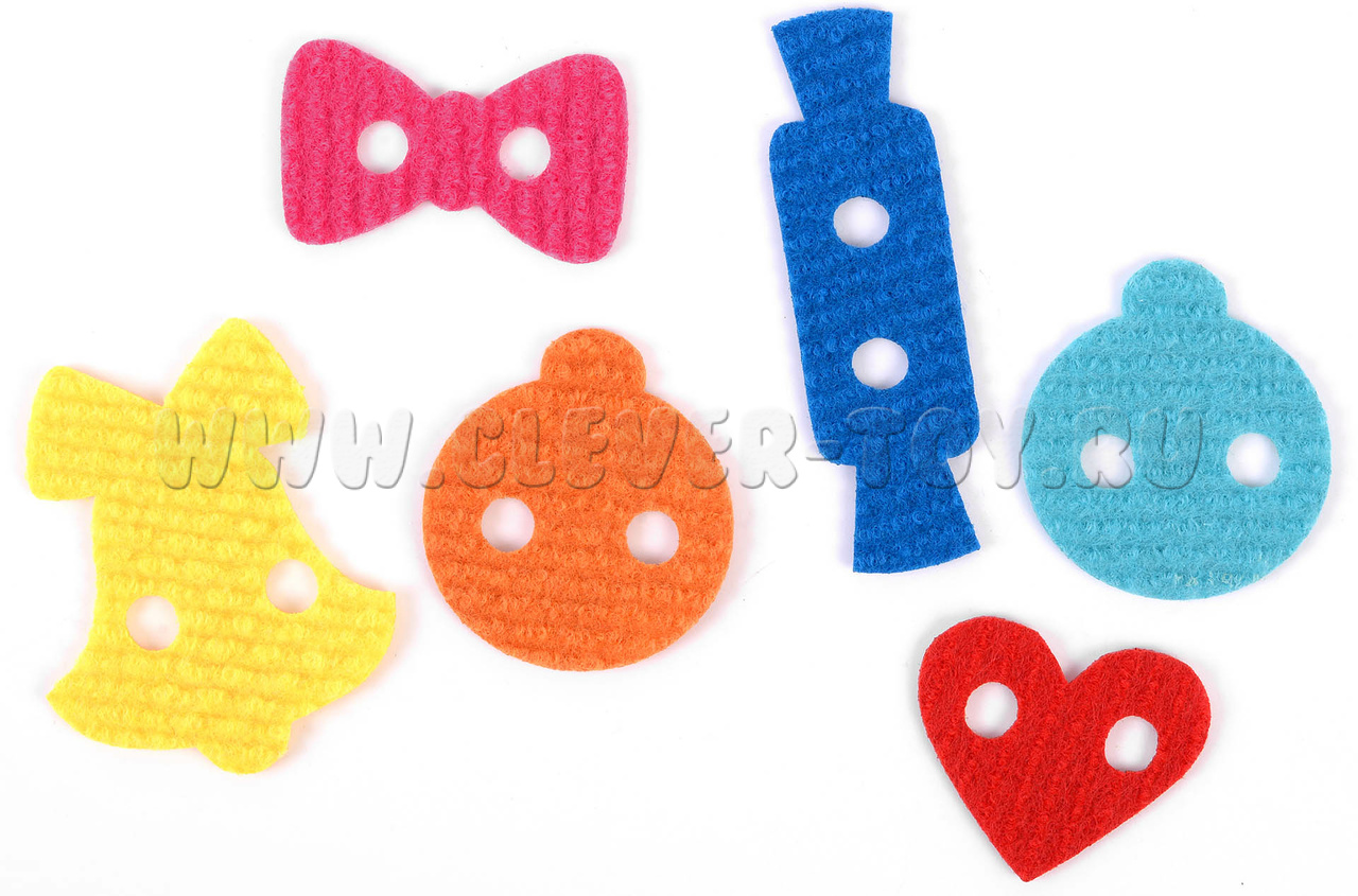 • разноцветные фигурки (колокольчик, сердечко, бантик, два шарика и хлопушка);