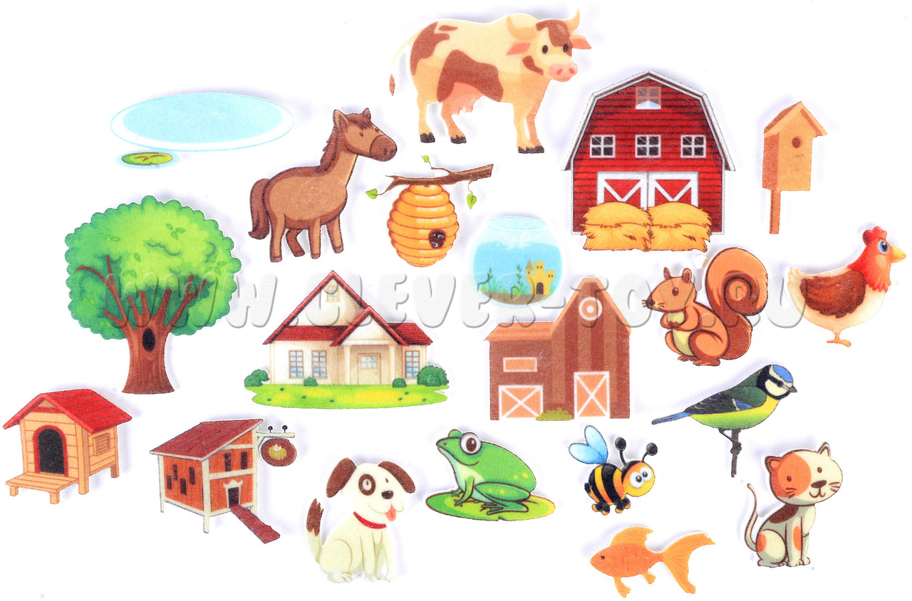 - Фигурки зверят и их домиков: (20 шт.).