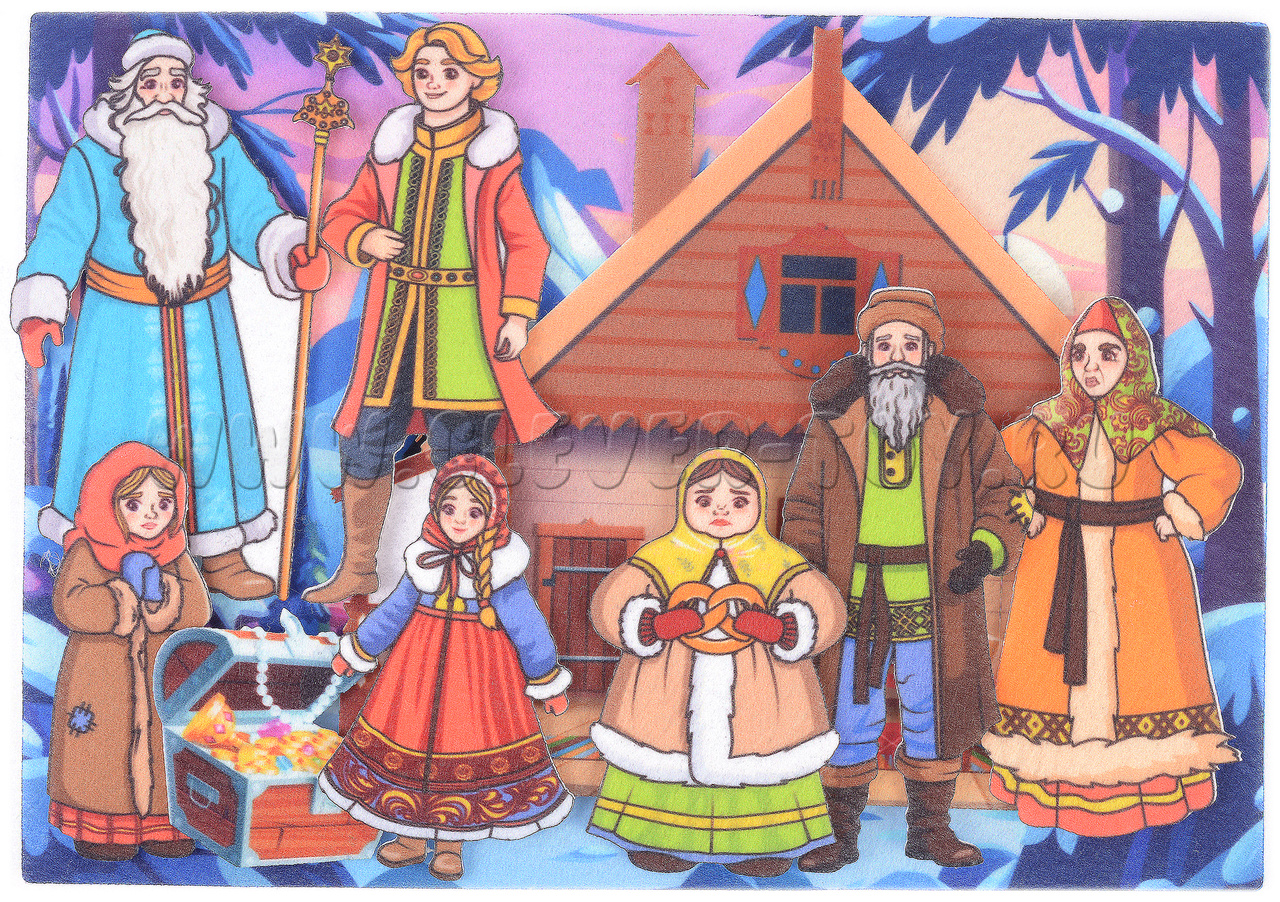 Игровой набор «Морозко» основан на русской народной сказке. Игра поможет развить у ребёнка воображение и речь, а также мелкую моторику рук.В набор входит игровое поле и 7 фигурок.