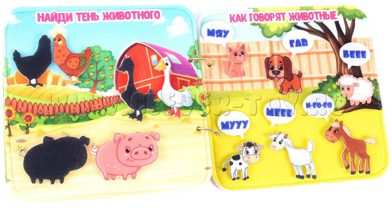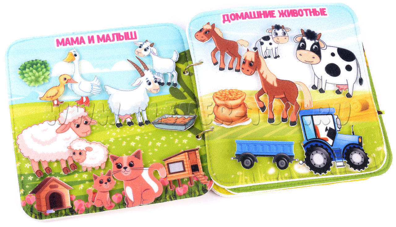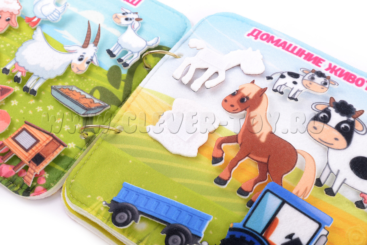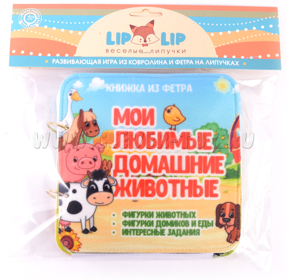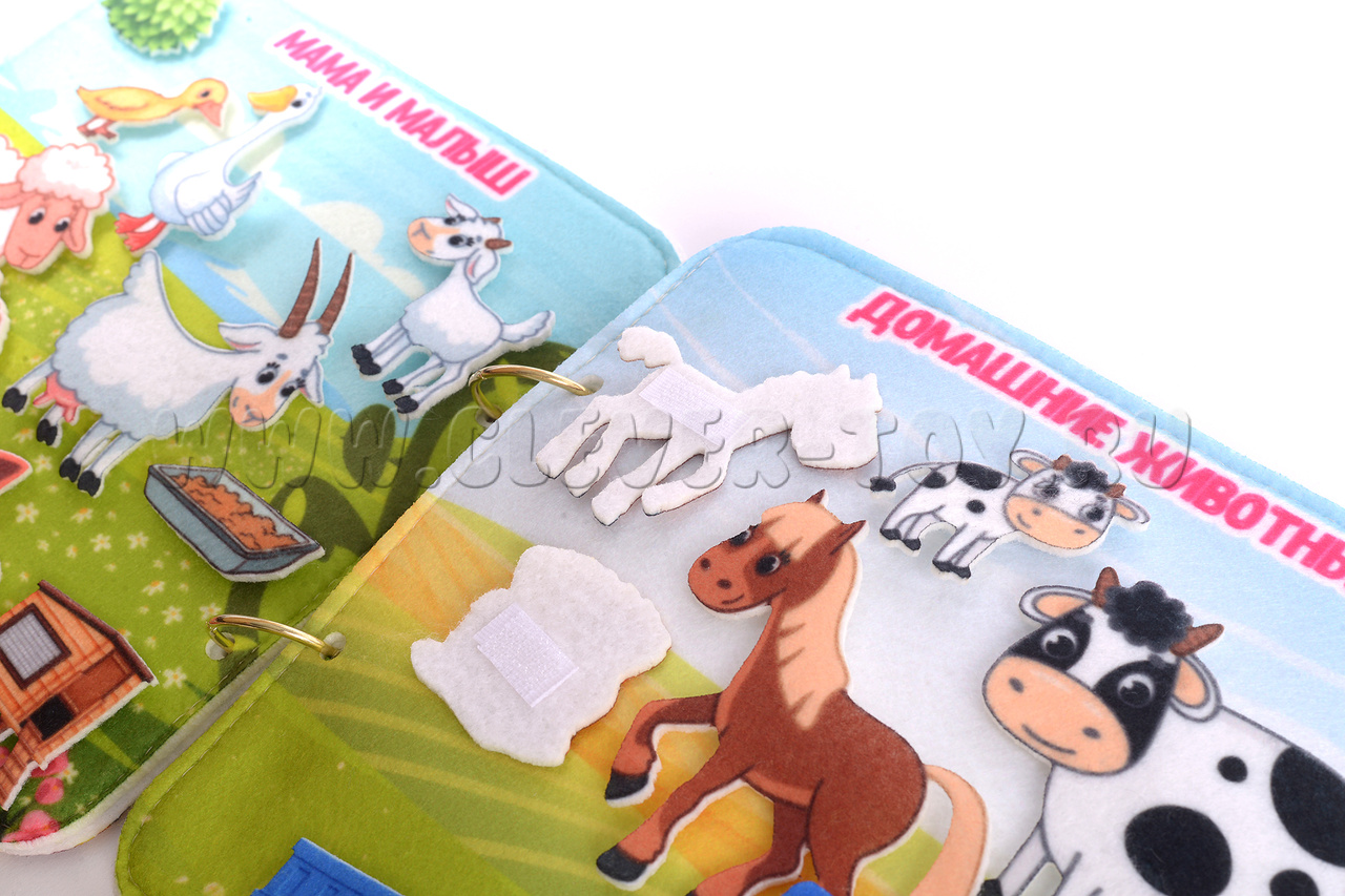 Игра-конструктор для детей старше 3-х лет. Авторская развивающая книга «Домашние животные» из ковролина с фигурами на липучках от российской компании «Lip-Lip».