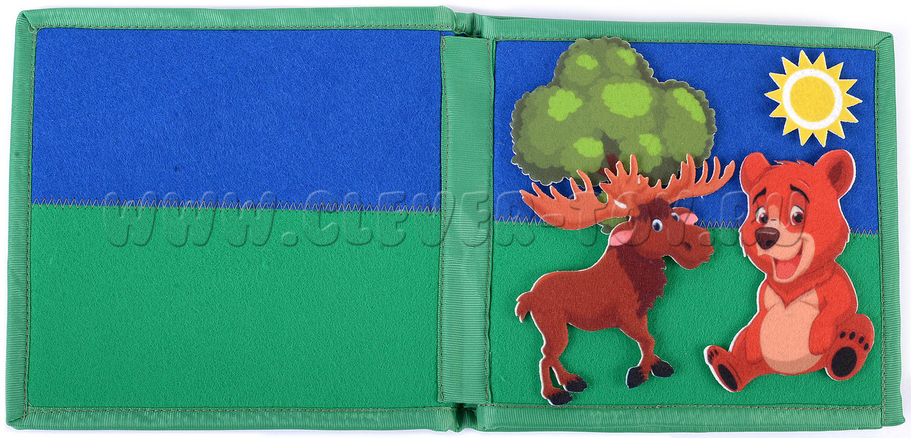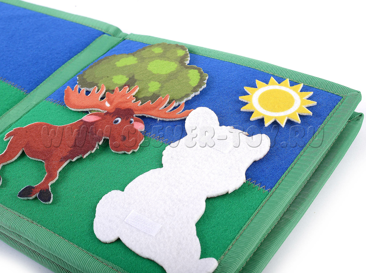 Игра-конструктор для детей старше 3-х лет. Авторская развивающая книга «Животные леса» из ковролина с фигурами на липучках от российской компании "Lip-Lip". Ручная работа.