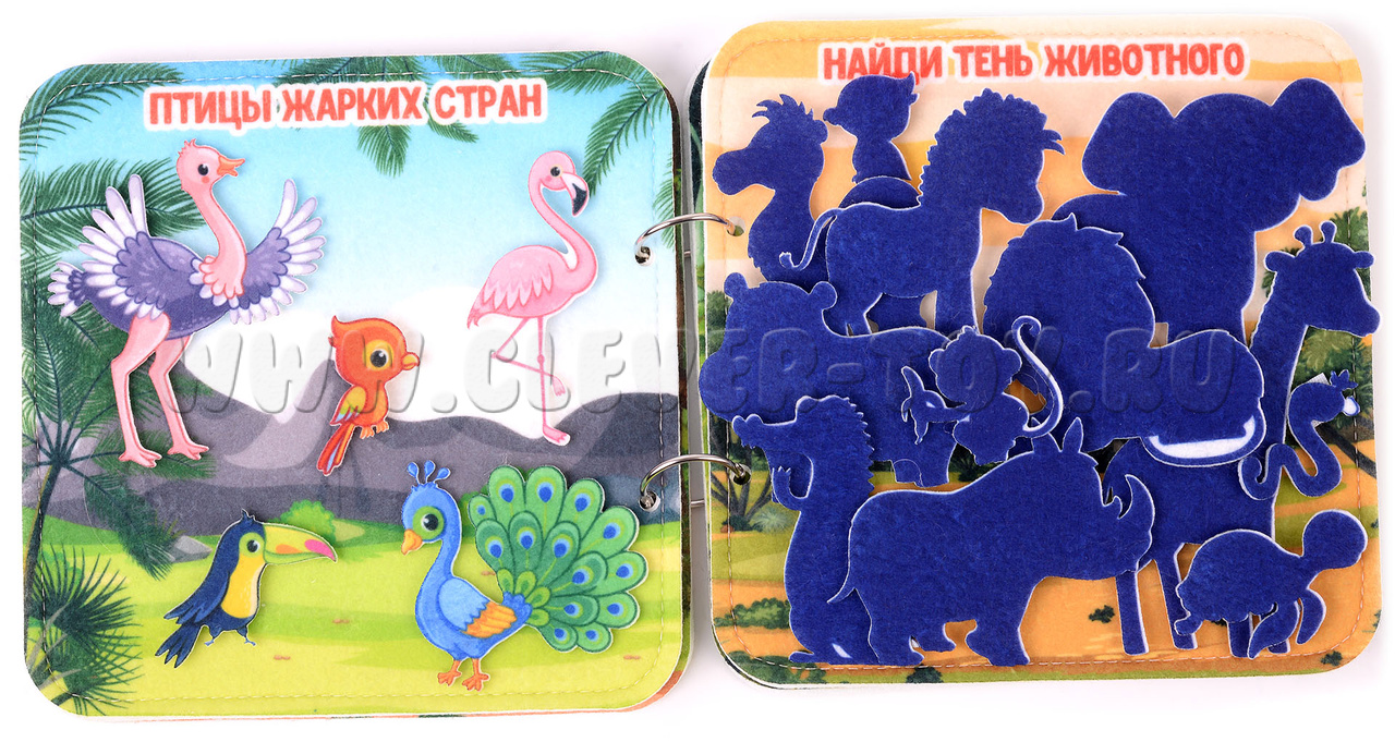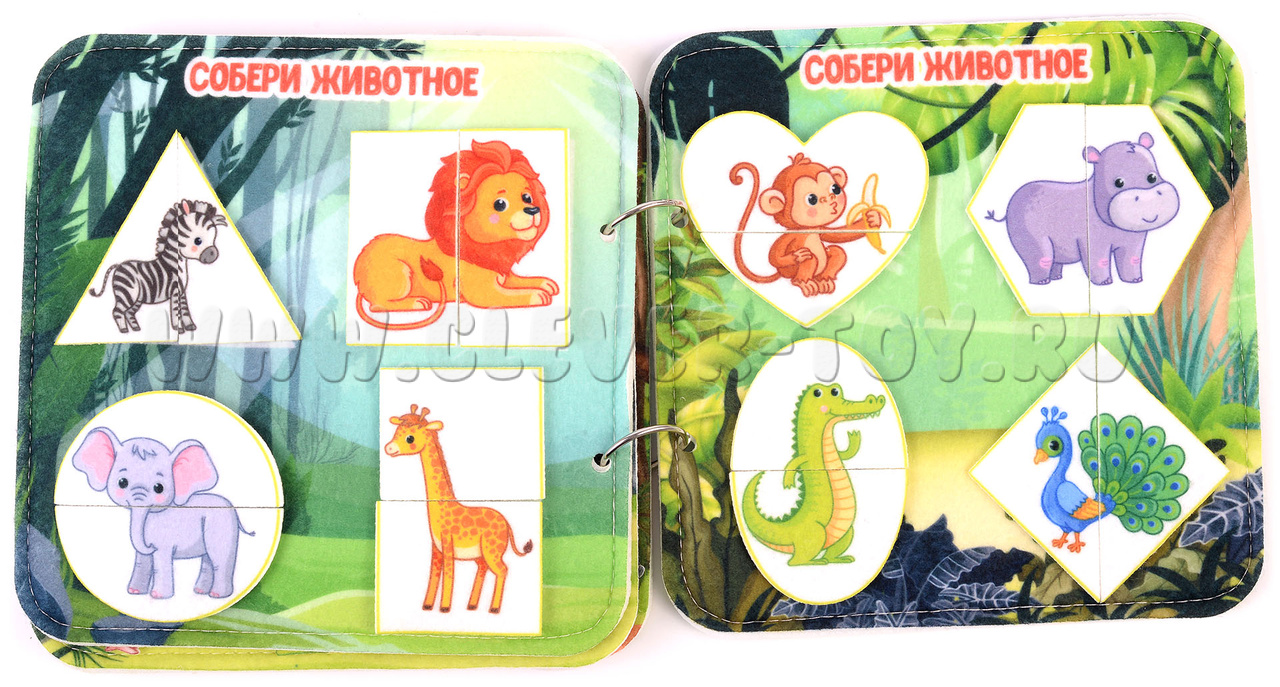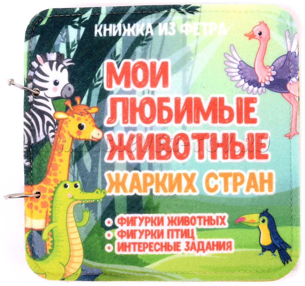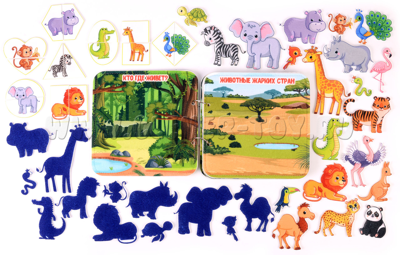 Авторская развивающая книга "Животные жарких стран" из ковролина с фигурами на липучках от российской компании "Лип-Лип".