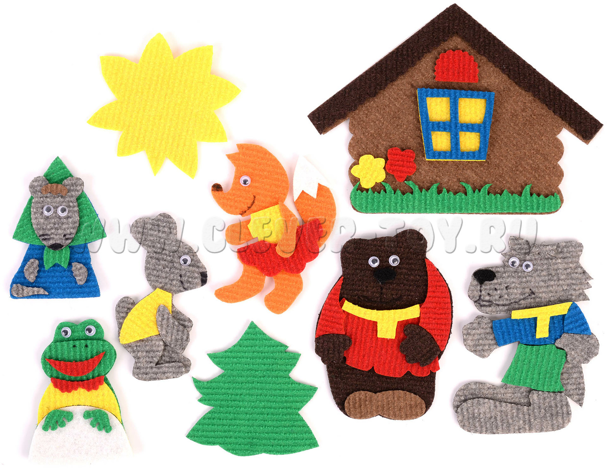 Авторская развивающая игра из ковролина с фигурами на липучках от российской компании «Лип-Лип» по мотивам русской народной сказки «Теремок». Ручная работа.