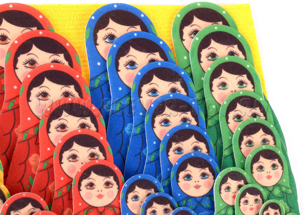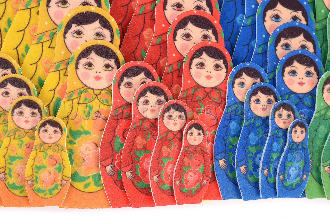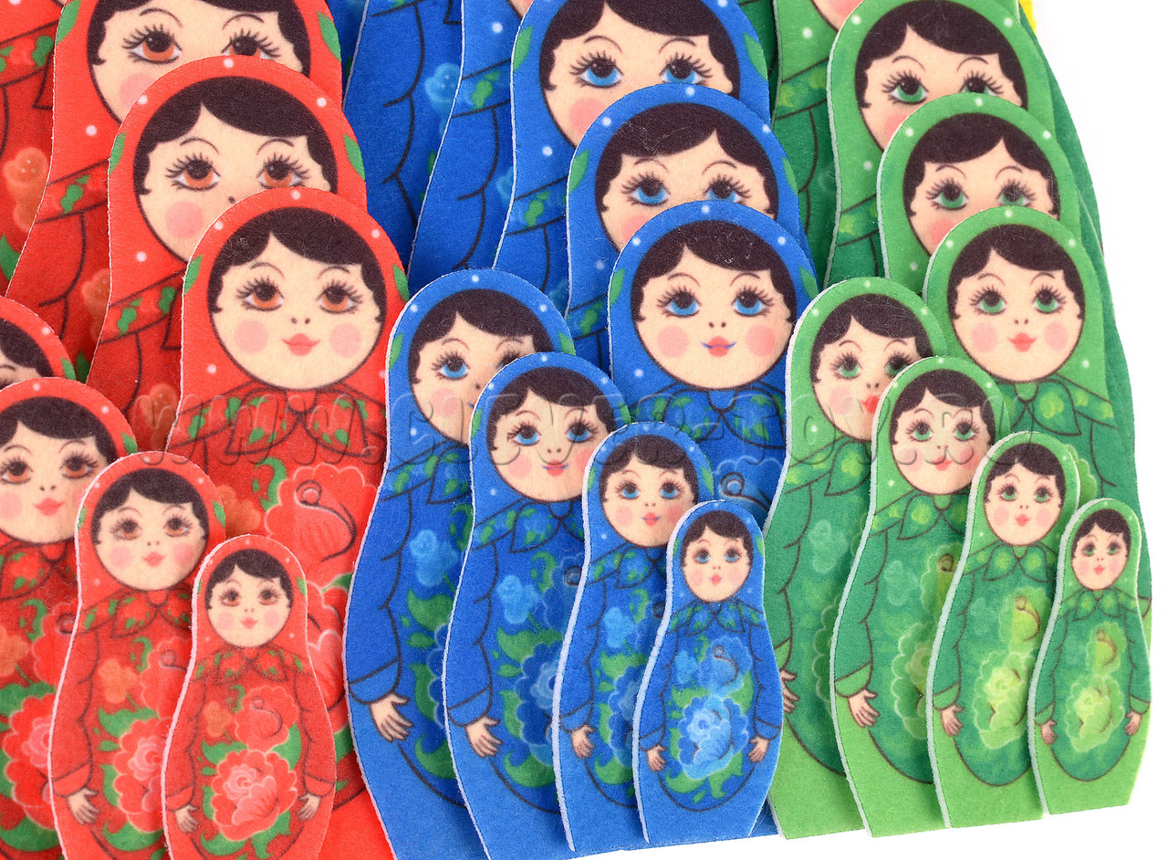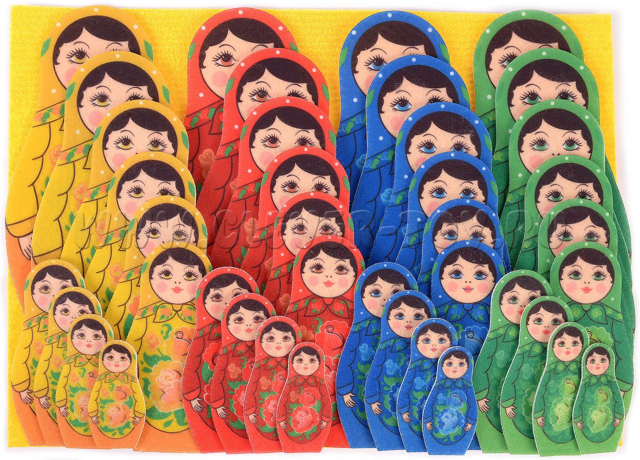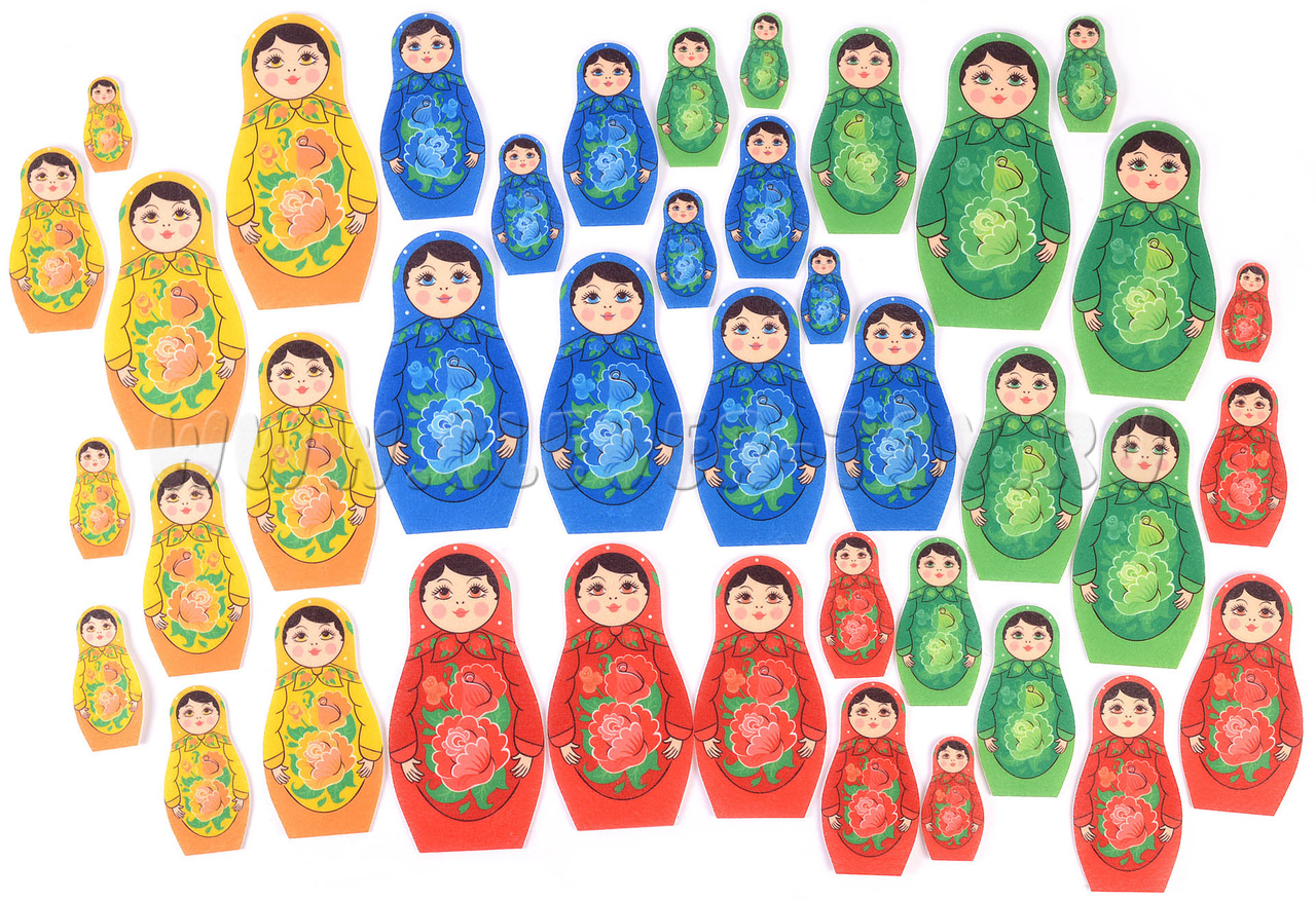 Игровое поле 25*35см, 40 матрешек высотой от 6 до 20см.