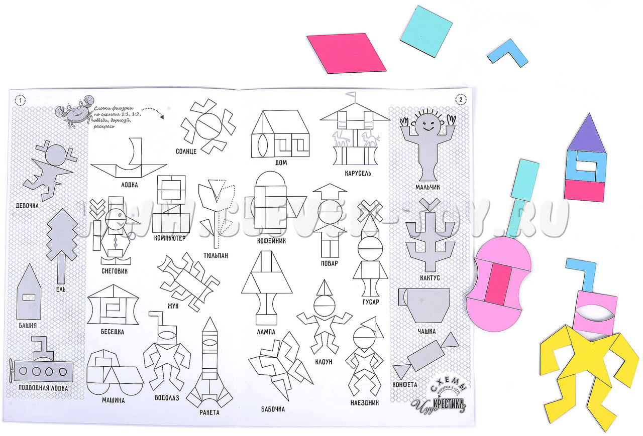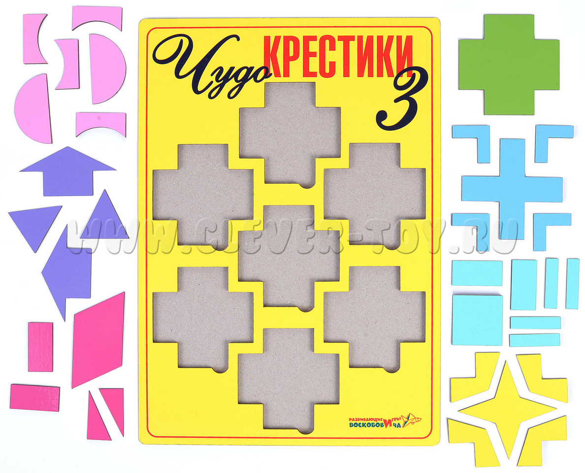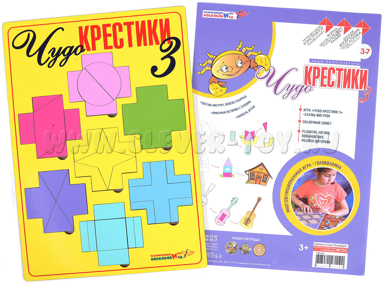 «Чудо-крестики3» - это бесконечные возможности для творчества. С их помощью ребёнок сможет изучить формы, цвета и создавать бесконечное множество фигур человечков, растений, зверей, птиц, зданий, техники, предметов. В отличие от конструкторов «Чудо-Крестики 1 и 2» «Чудо-Крестики 3» разделён на бОльшее количество частей и дарит новые возможности для конструирования.