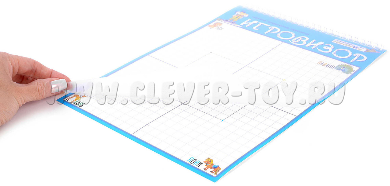 1. Картонная основа (цв. печать, разлинована на клетки1х1см, формат А4), верхний лист матовый пластик на переплётной пружине - 1шт.;