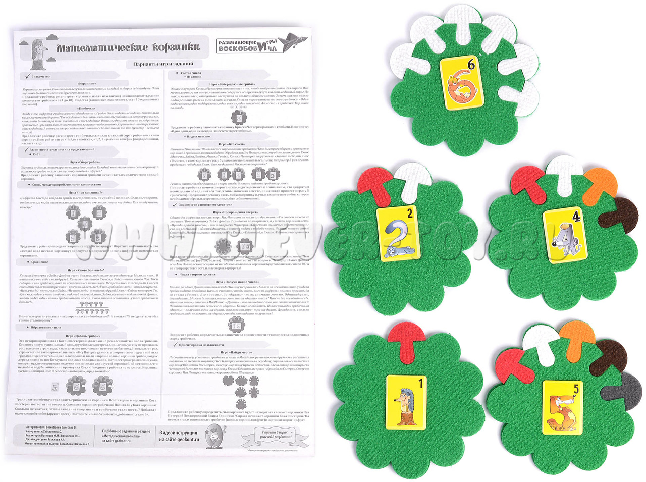 В комплект также входит инструкция-подсказка для родителей и педагогов с вариантами игр и заданий: