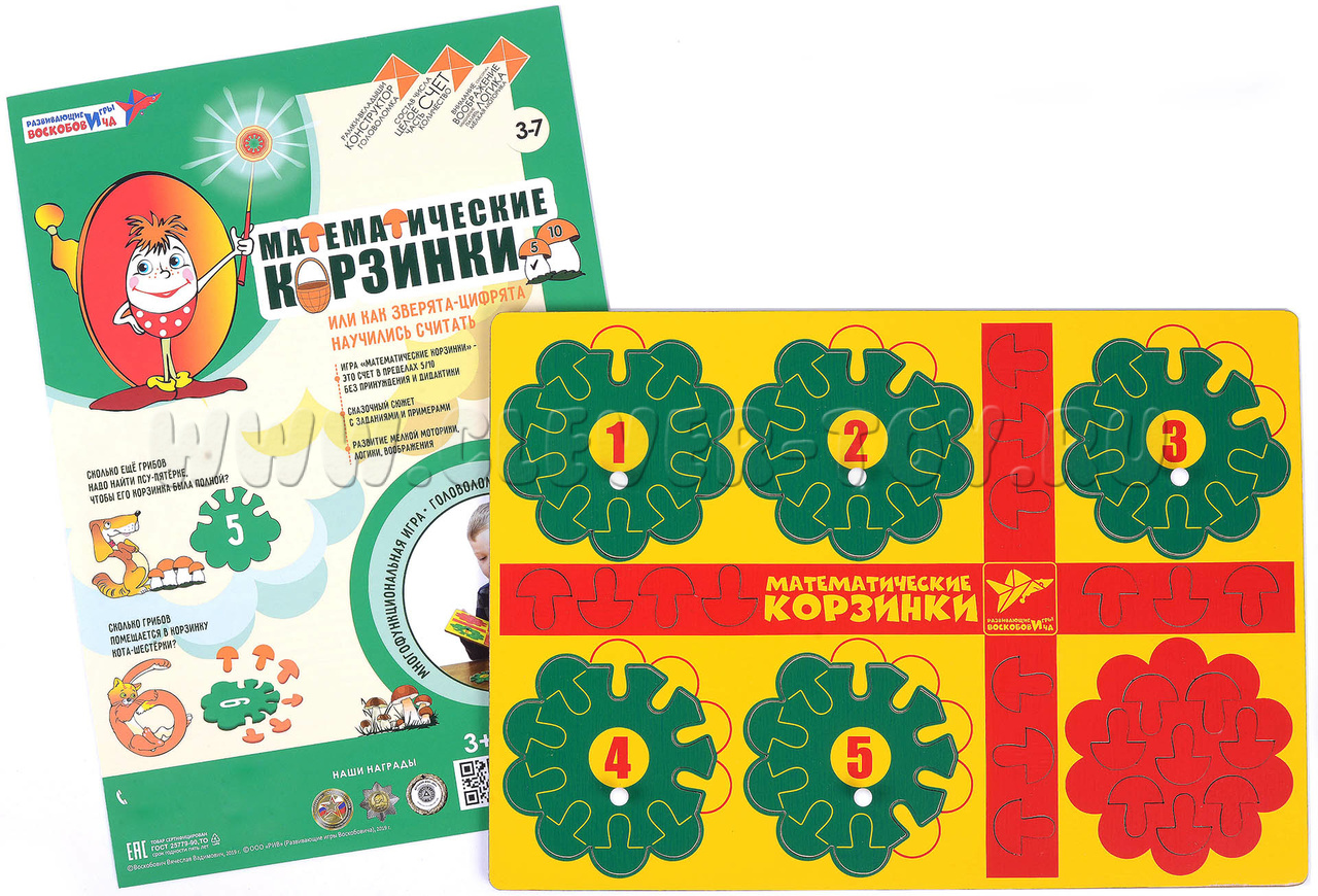 Математические корзинки – это обучающая игра, разработанная фирмой «Развивающие игры Воскобовича». С её помощью без дидактического давления ребёнок: