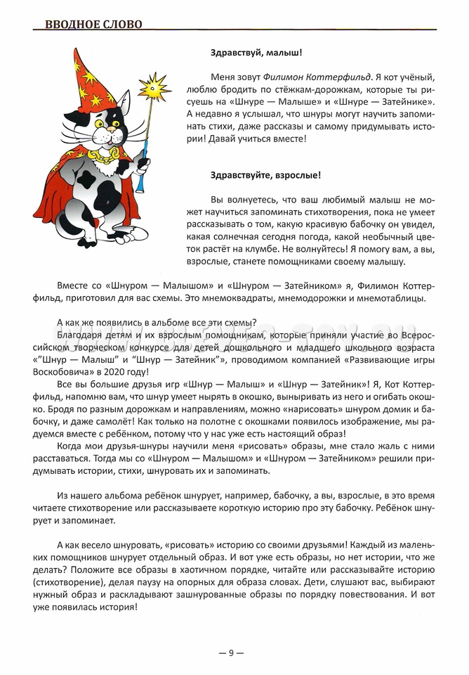 Пособие “Смотри-Шнуруй-Запоминай” объединяет две технологии: “Мнемотехника” и “Сказочные лабиринты игры” В.В. Воскобовича.