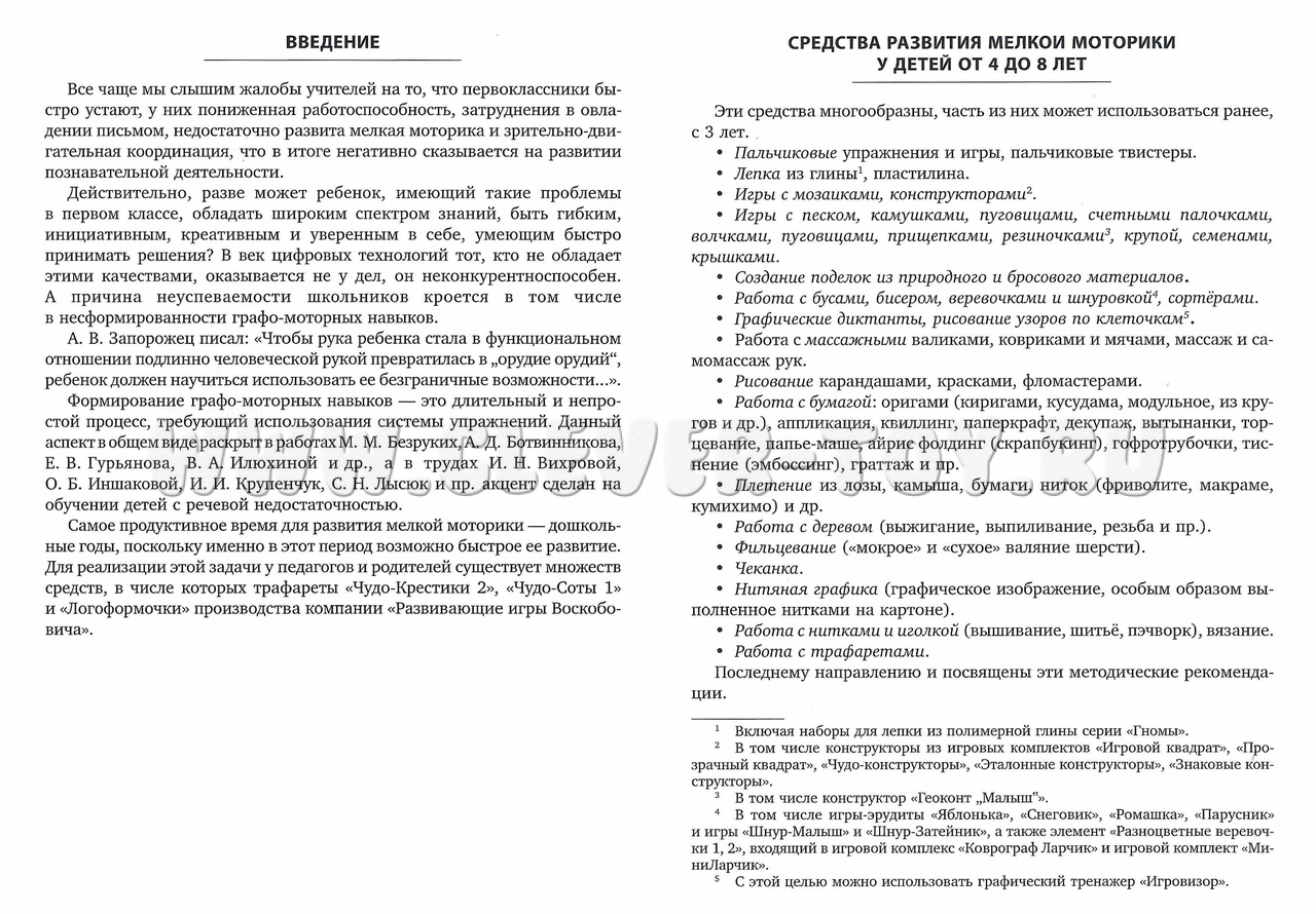 Собранные в этом сборнике рекомендации - результат многолетней педагогической работы С.В. Мамаевой, содержащий принципы, правила и характеристики образовательных приемов, рекомендации по развитию графо-моторных навыков и мелкой моторики у детей дошкольного или младшего школьного возраста с использованием трафаретов, разработанных В.В. Воскобовичем: "Чудо-крестики 2", "Чудо-соты 1", "Логоформочки".