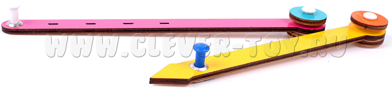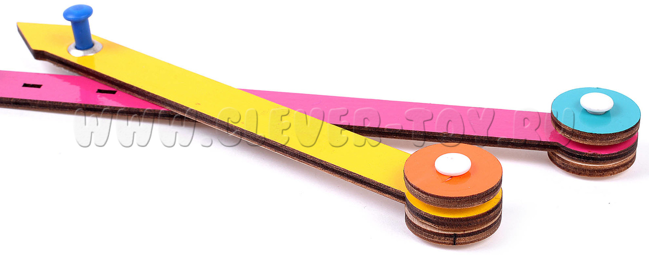 • Элемент «Круговерт» помогает построить окружности трёх размеров (имеет три отверстия) с помощью еще одного элемента пособия – «Разноцветных верёвочек»;