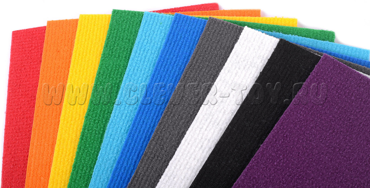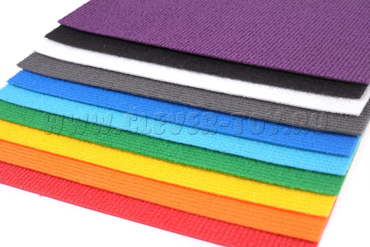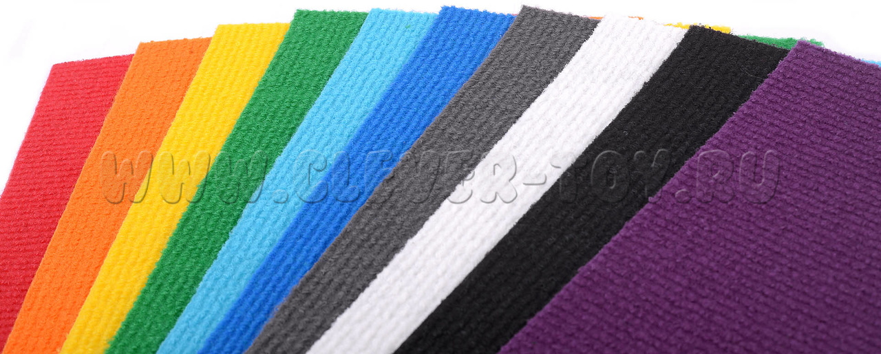 • 10 отрезков ковролина семи цветов радуги + чёрный, серый, белый.