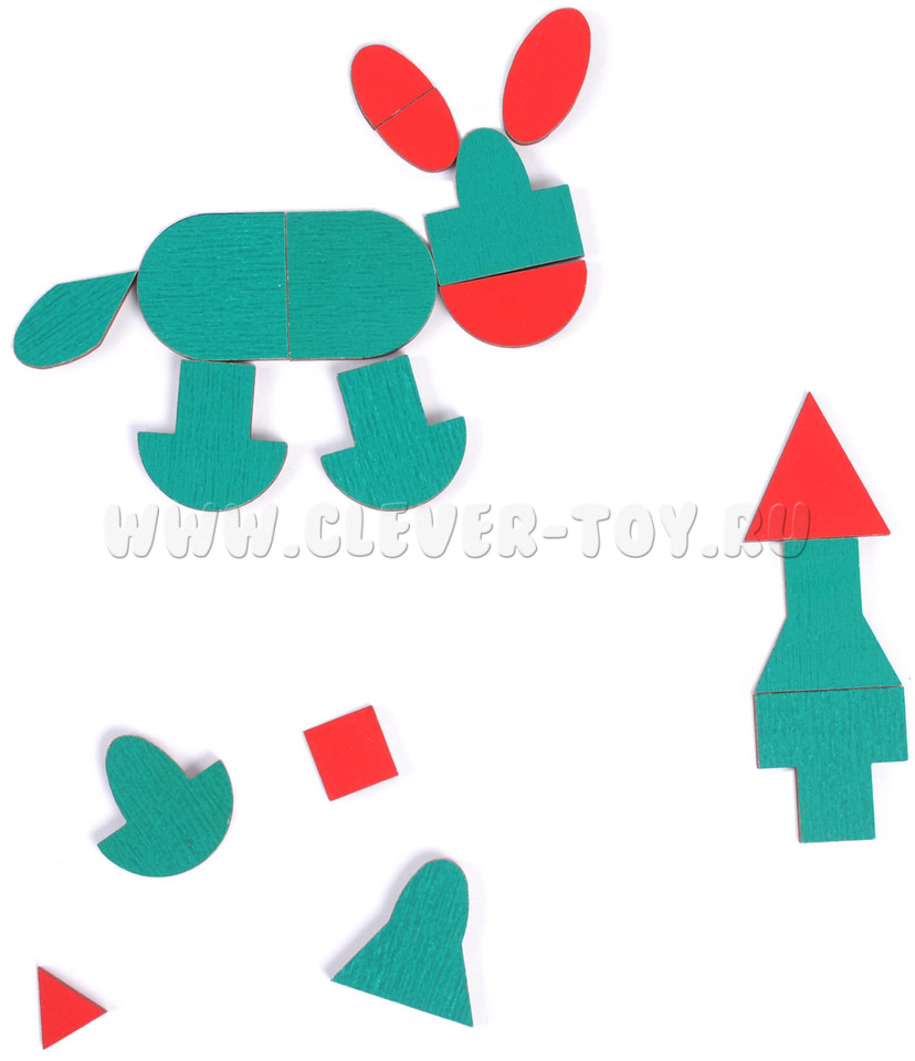 На этапе знакомства с игрой сдети вынимают из игрового поля все геометрические фигуры и вкладывают их обратно, дают образные названия всем фигурам ( палатка, кораблик, башенка и т.д.), играют с линейками, моделируют с их помощью эталонные и составные геометрические фигуры, конструируют фигуры на столе по образцу и словесному алгоритму. Кроме того, фигуры можно обводить на листе бумаги, раскрашивать их фломастером, складывать силуэты по образцу и собственному замыслу.
