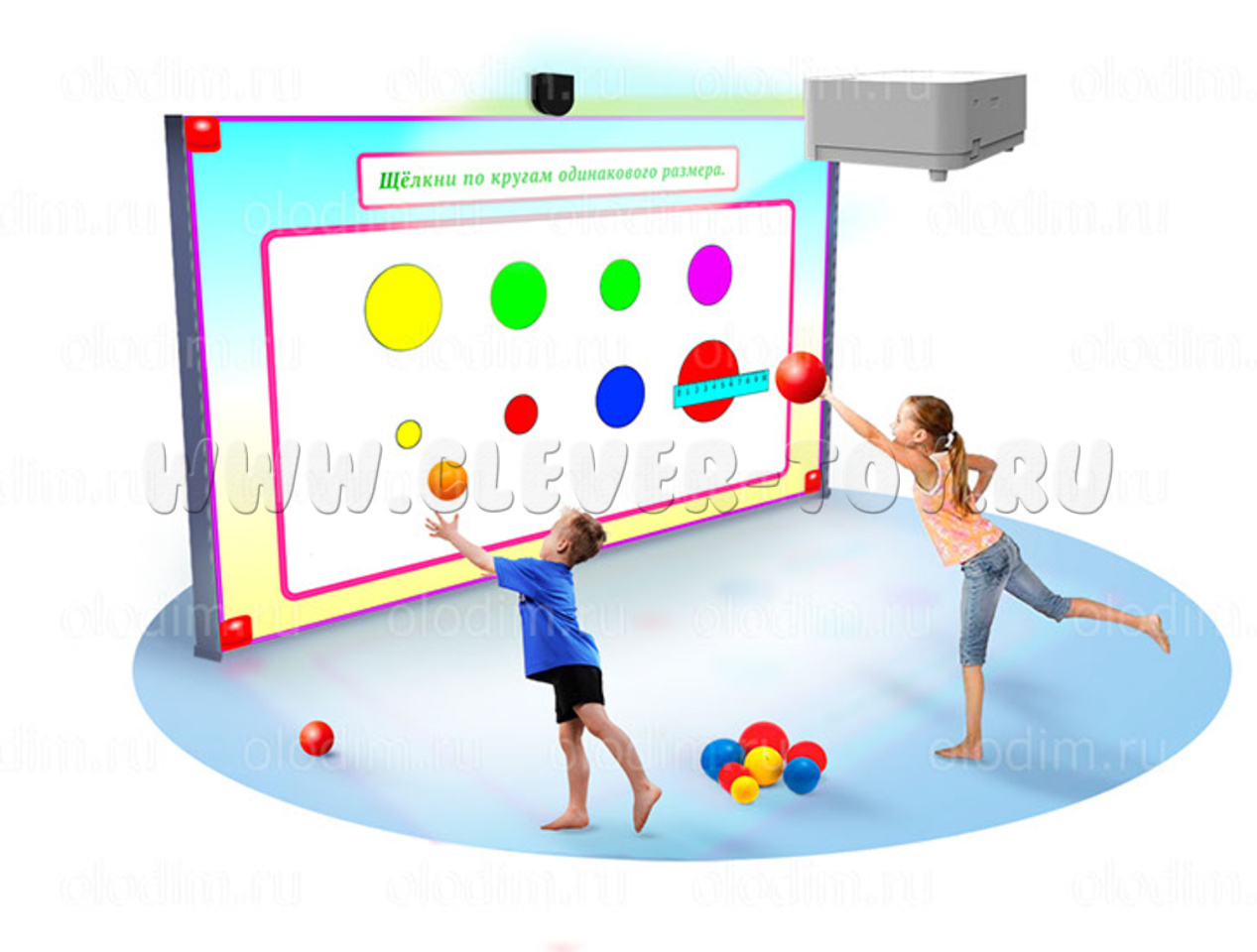Игры на интерактивной стене способствуют разностороннему физическому и умственному развитию детей, при этом дети могут играть в них самостоятельно, без участия педагога. Интерактивная система позволяет создать плейлист из определённых игр и запускать их в определенное время (например, на переменах). Для выполнения игровых заданий нужно бросать мячики, касаться изображения руками или мягкими палочками. Предустановленные программы позволят детям в игровой форме изучать математику, алфавит, окружающий мир и многие другие предметы. Часть заданий разбита на возрастные группы, часть рассчитана на детей всех возрастов и часть на совсем маленьких детей. Принимать участие может практически неограниченное количество детей: можно играть всем вместе или делиться на команды, выполняя задания на скорость.
