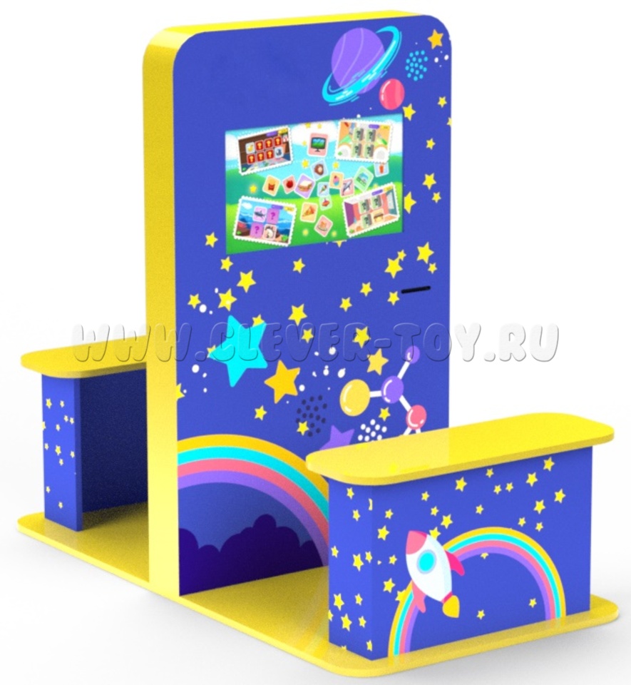 Двусторонний напольный комплекс "Радуга" Дуэт оснащен 2 антивандальными сенсорными мониторами. При своих небольших габаритах позволит разместить сразу несколько ребят на специально подобранных по высоте, стульчиках с высококачественным шумопоглощающим и противоскользящим покрытием.