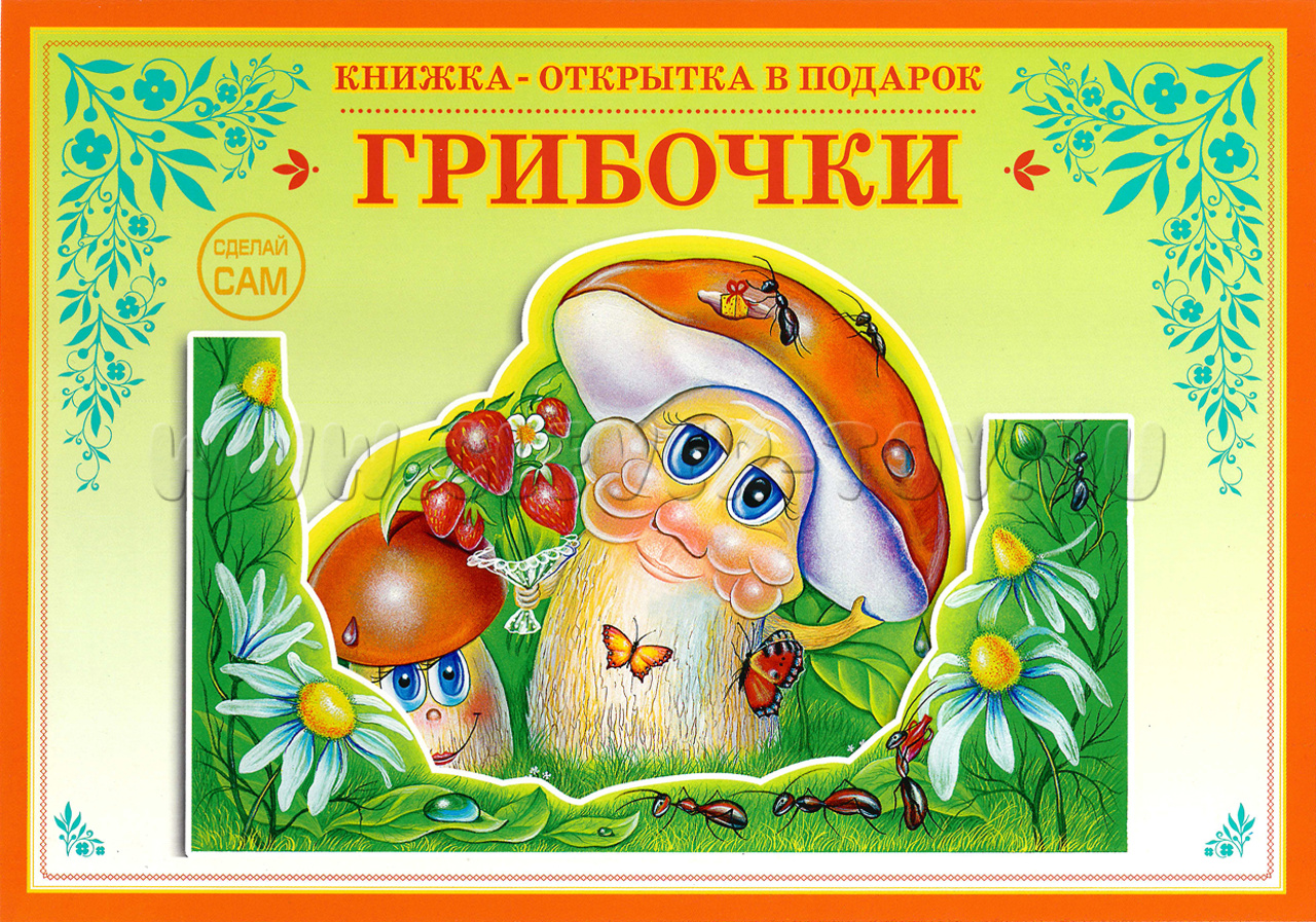 3D объёмная открытка-книжка для детского творчества "Грибочки".