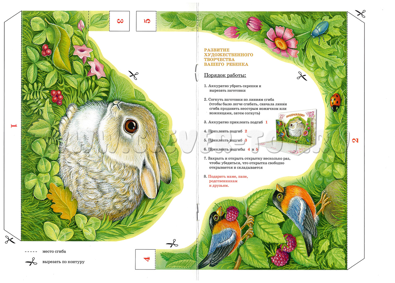 3D объёмная открытка-книжка для детского творчества "Зайчик".