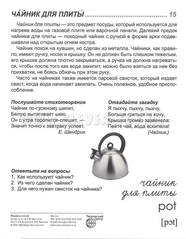 На обороте каждой предметной картинки - описание, вопросы для ребёнка, название на русском и английском языках.
