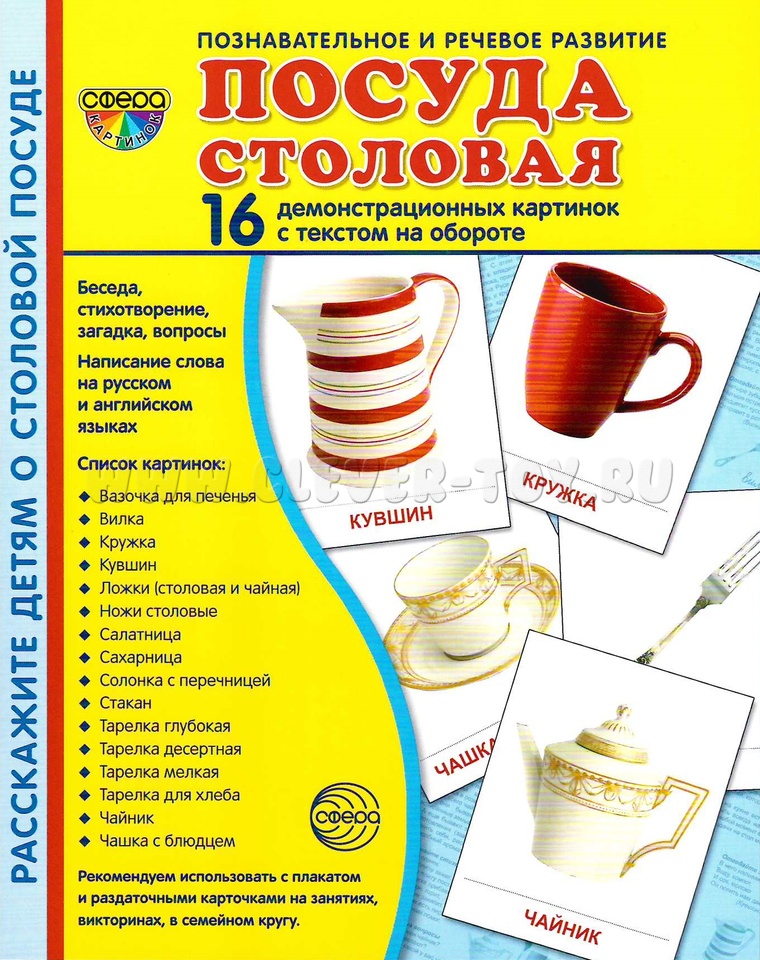 Демонстрационные картинки СУПЕР. Посуда столовая (16 шт.)