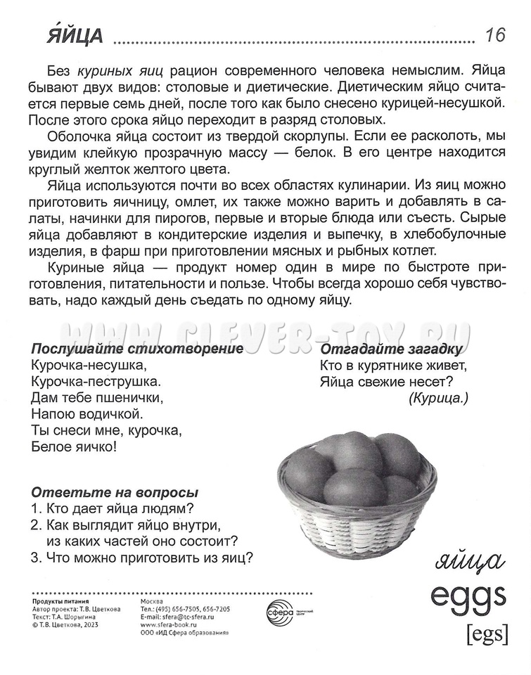 Набор карточек "Продукты питания" состоит из бесед, стихотворений, загадок и вопросов по теме. Комплект включает 16 цветных демонстрационных картинок с текстом на обороте, названия тем имеют перевод на английский язык.