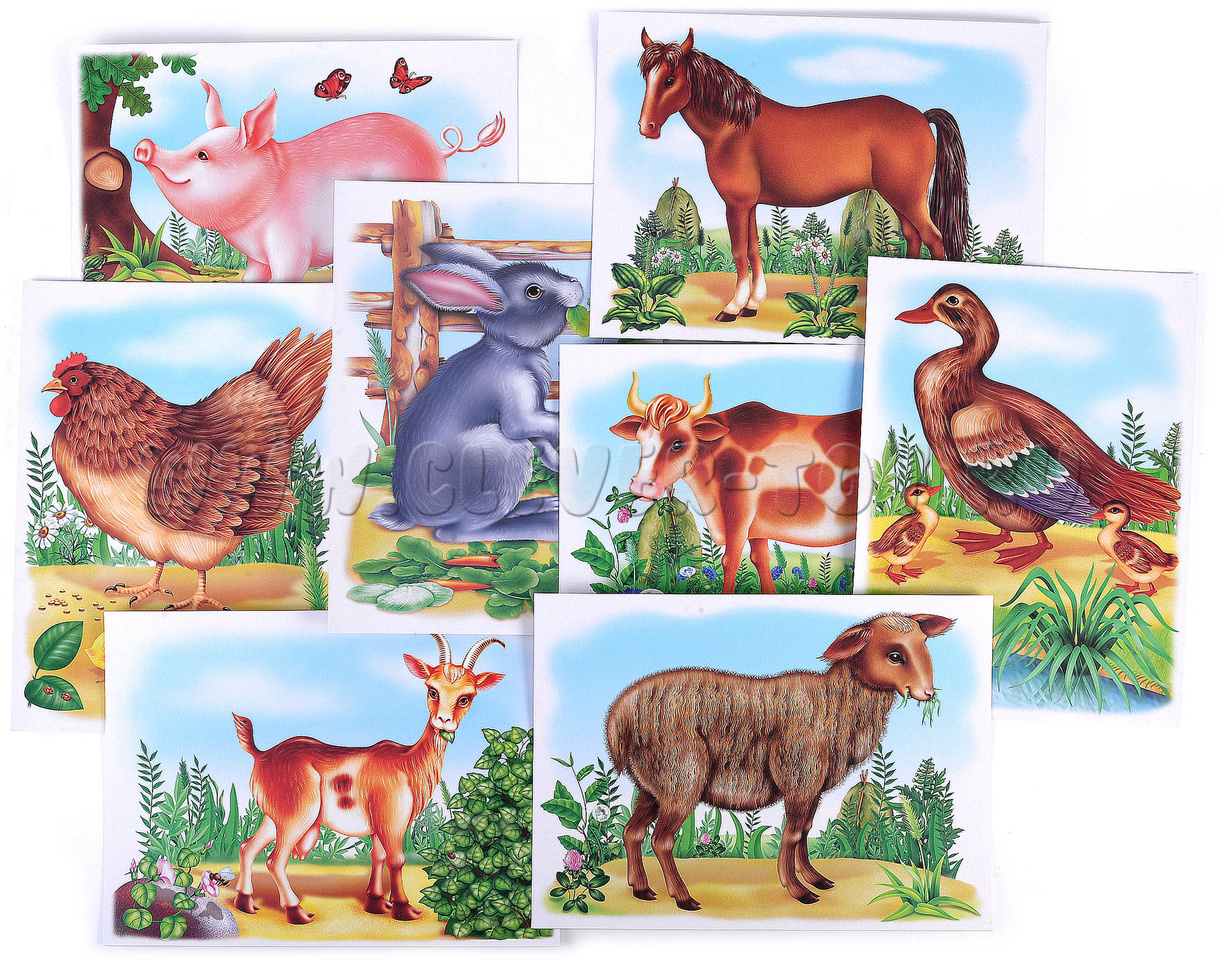Этот демонстрационный материал предназначен для занятий в группах детского сада и индивидуально. Цель пособия - дать детям ясное представление о домашних животных. Каждая картинка - тема для беседы о каком-либо домашнем животном, о том, чем оно питается, что любит и т.д.