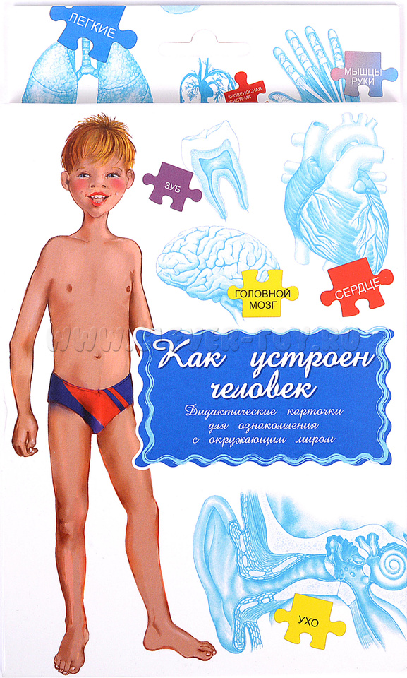Игра поможет познакомиться со строением человеческого тела, с его системами и органами, а также с интересными фактами про них. Развивающие карточки могут использоваться не только в домашних условиях, но и в дошкольных и школьных учреждениях. Как индивидуально, так и в группе. Игра научит классифицировать, сравнивать и обобщать, а также поможет развить речь. Пособие доставит вашему малышу и вам немало приятных минут проведенных вместе за полезным занятием!