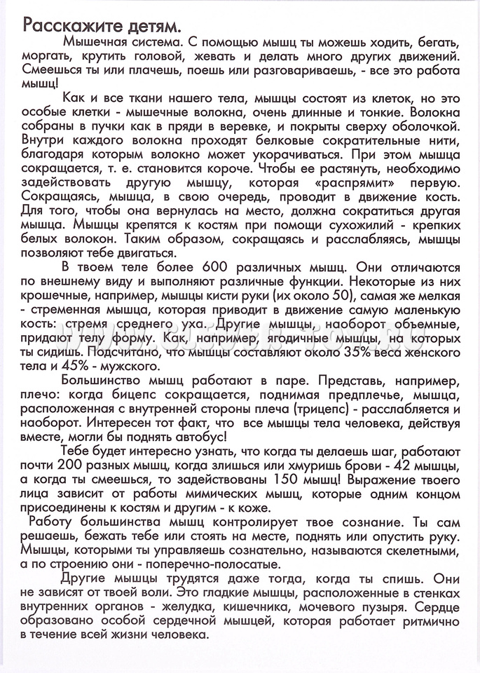 Карточки выполнены из плотного матового картона. С одной стороны нанесены рисунки, со строением тела человека, а с другой стороны очень познавательная и интересная информация. Игра состоит из 16 карточек и коробки. На обратной стороне коробки написаны примеры игр с детьми. Задача этой серии расширить кругозор, словарный запас и логическое мышление.