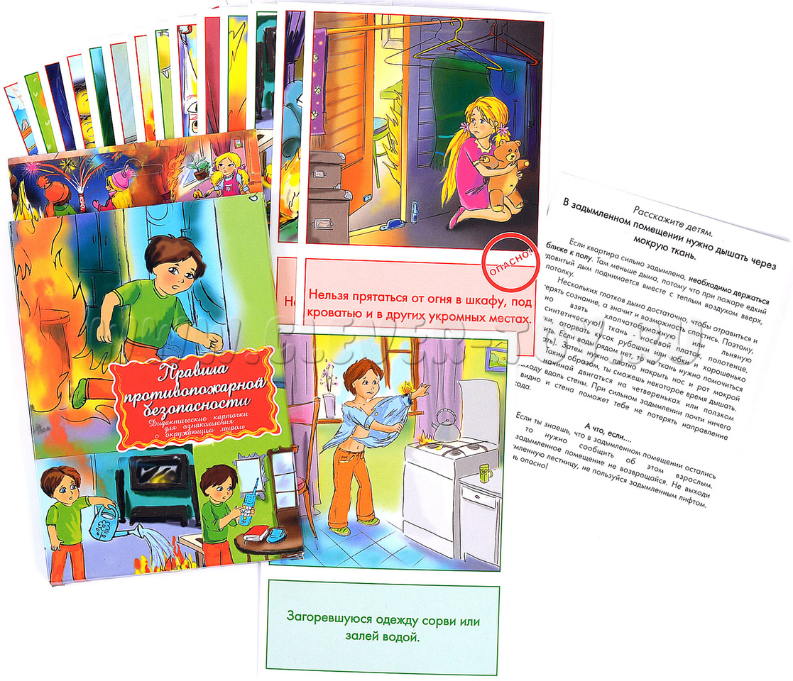 Наглядные карточки от ООО "Маленький гений" познакомят ребёнка с правилами безопасного поведения с огнём:
