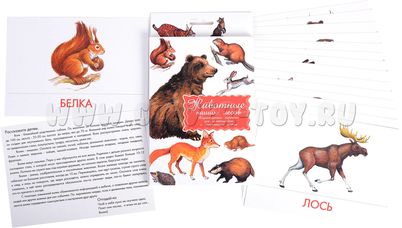Игра поможет познакомиться с животными, живущими в лесах наших широт, а также с интересными фактами про них. Развивающие карточки могут использоваться не только в домашних условиях, но и в дошкольных и школьных учреждениях. Как индивидуально, так и в группе. Игра научит классифицировать, сравнивать и обобщать, а также поможет развить речь. Пособие доставит вашему малышу и вам немало приятных минут проведенных вместе за полезным занятием!