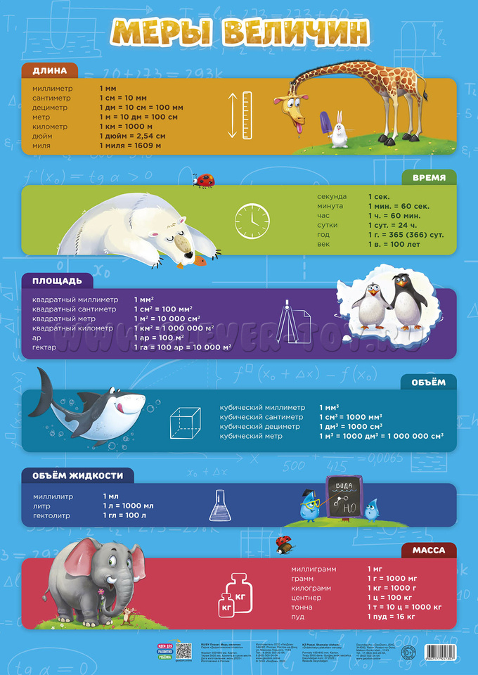 • обучающий плакат "Меры величин" (45*64 см),
