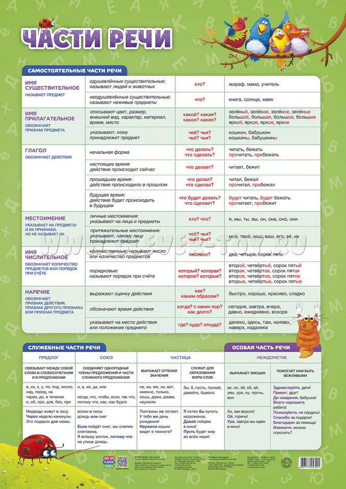 • обучающий плакат "Части речи" (45*64 см),