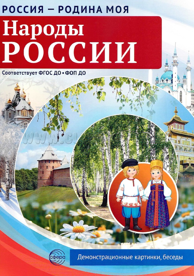 Пособие "Народы России" включает в себя серию демонстрационных материалов, посвящённых традиционным костюмам различных народов, проживающих на территории нашей страны.