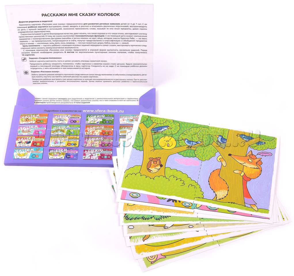 С помощью этого набора дети смогут не только собрать и воссоздать сюжет хорошо знакомой сказки, но и рассказать и показать её, выполняя разнообразные увлекательные задания.