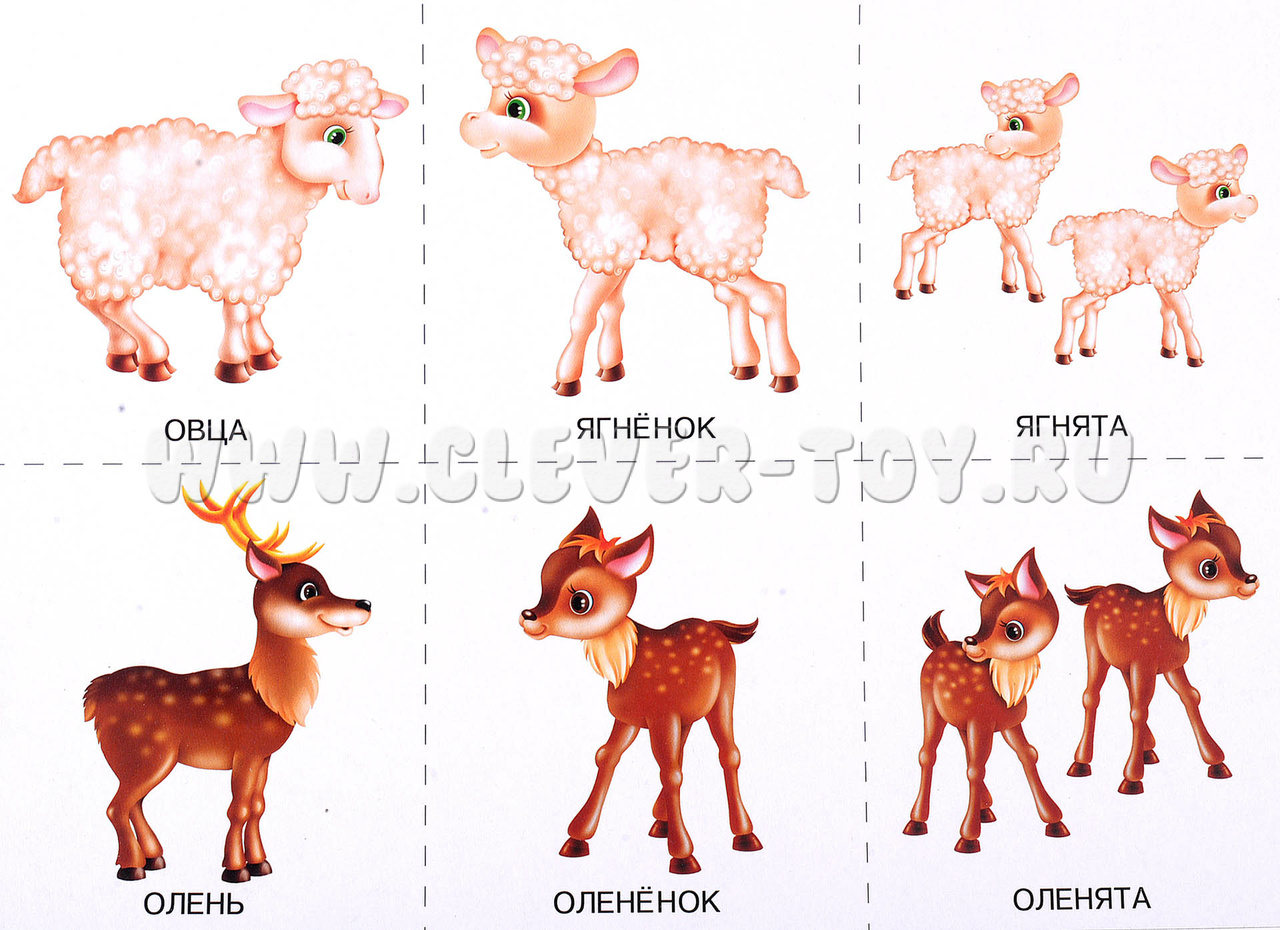 Перед началом игры нужно разрезать карты по пунктирным линиям (получится 72 карточки). Детям раздаются карточки со взрослыми животными, затем ведущий показывает изображения детенышей, а ребята подбирают соответствующие карточки.