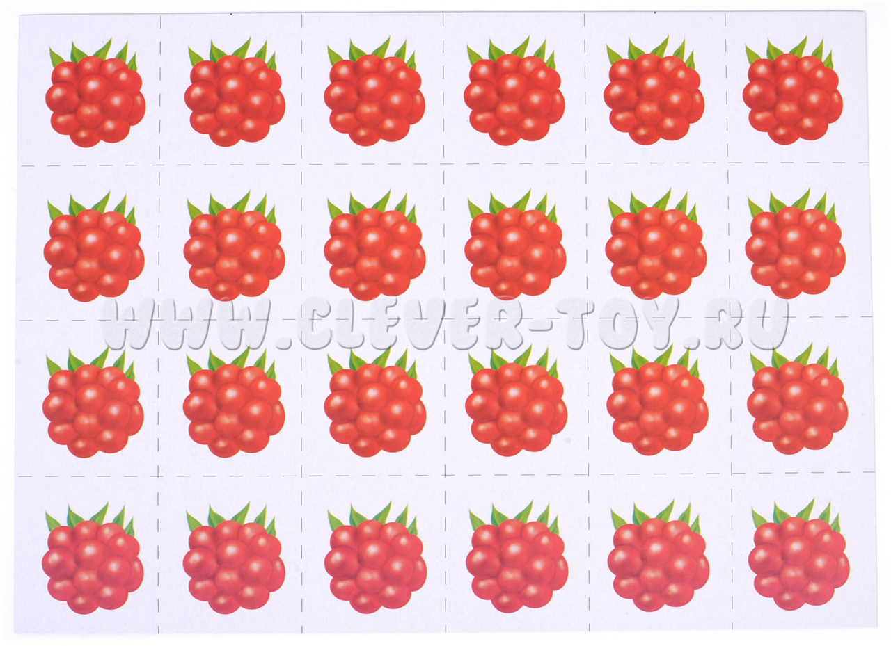 Ребенок выбирает 1 из 4 вариантов ответа на карточке с заданием и, в случае успеха, вознаграждается карточкой с картинкой-ягодой. После выполнения всех заданий считаем количество полученных ягод: 20-24 - высокий уровень развития внимания; 0-10 - низкий (нужны дополнительные занятия).