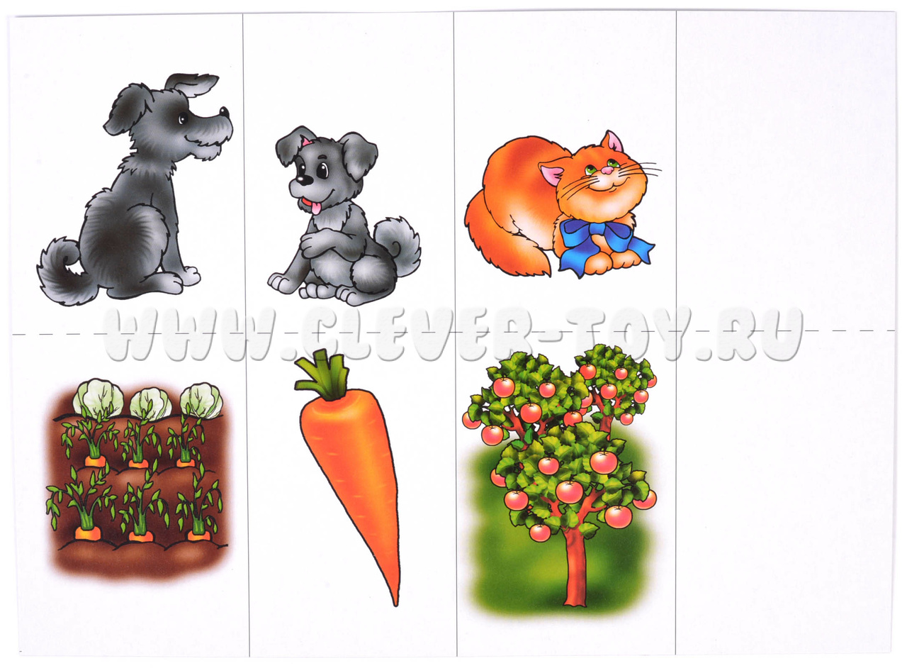 В наборе папка для хранения и 10 карт: 16 неоконченных смысловых цепочек и 16 картинок-окончаний. Перед началом игры разрежьте карты по пунктирным линиям. Предложите малышу найти закономерность и подобрать подходящую к цепочке картинку, выложив ее на пустую клетку карты. Попросите ребенка аргументировать свой выбор.