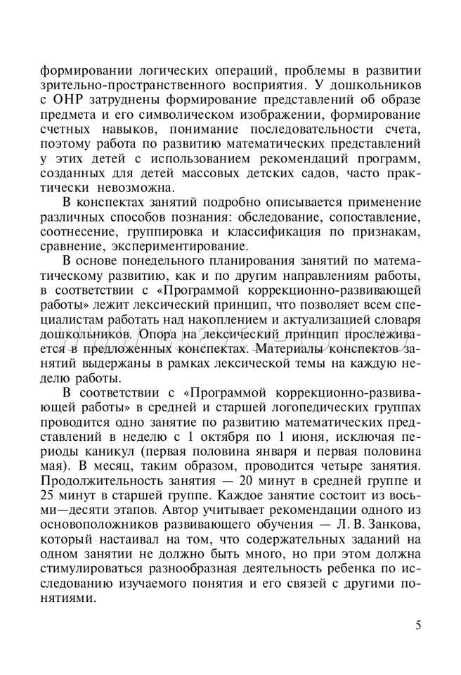 Пособие "Развитие математических представлений у дошкольников с ОНР ( с 4 до 5 и с 5 до 6 лет)" рекомендовано к использованию в дошкольных образовательных учреждениях. В пособии представлены конспекты занятий воспитателя по развитию математических представлений у дошкольников среднего и старшего дошкольного возраста.