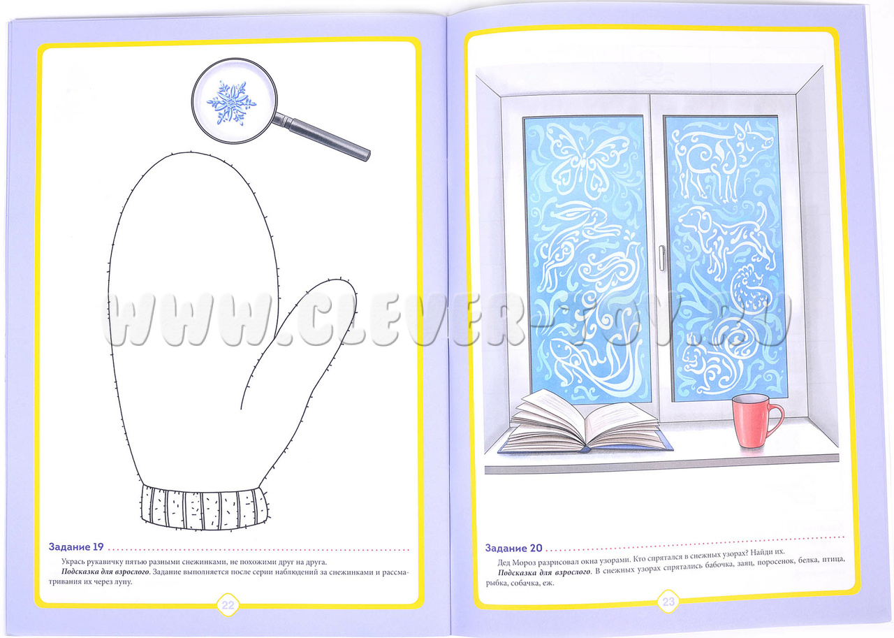 В комплект для каждой тетради есть наклейки для развивающих игр в тетради, а также к каждому заданию написаны подсказки для родителей и воспитателей.