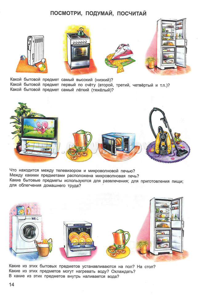 - Иллюстрации бытовой техники (пылесос, утюг, холодильник, микроволновая печь, электрочайник, стиральная машина, посудомоечная машина, телевизор, кухонная плита, электрообогреватель);