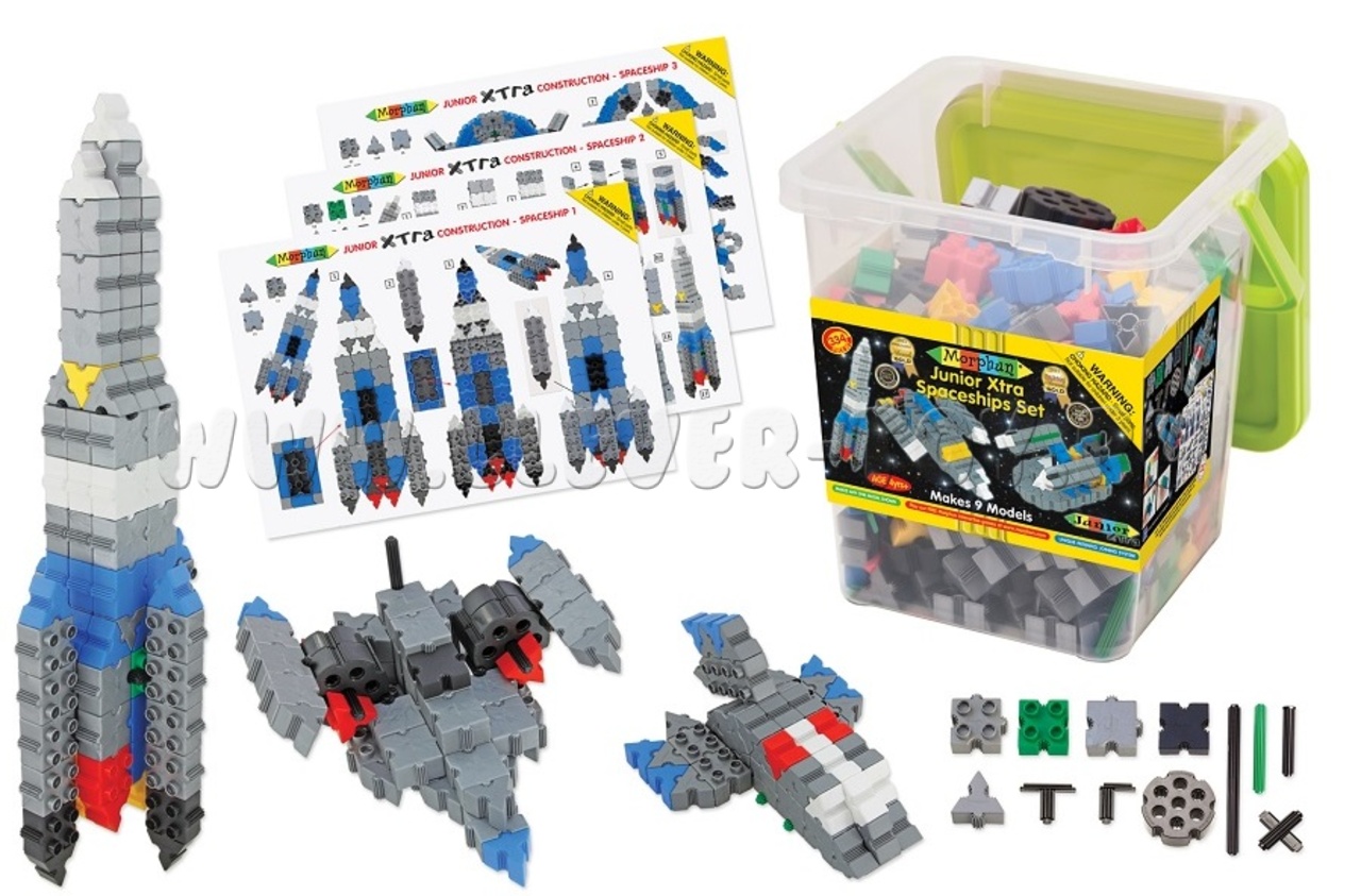 Конструктор Morphun Junior Xtra Spaceships Set упакован в ударопрочный пластиковый короб с крышкой и удобной ручкой для переноски и хранения деталей.